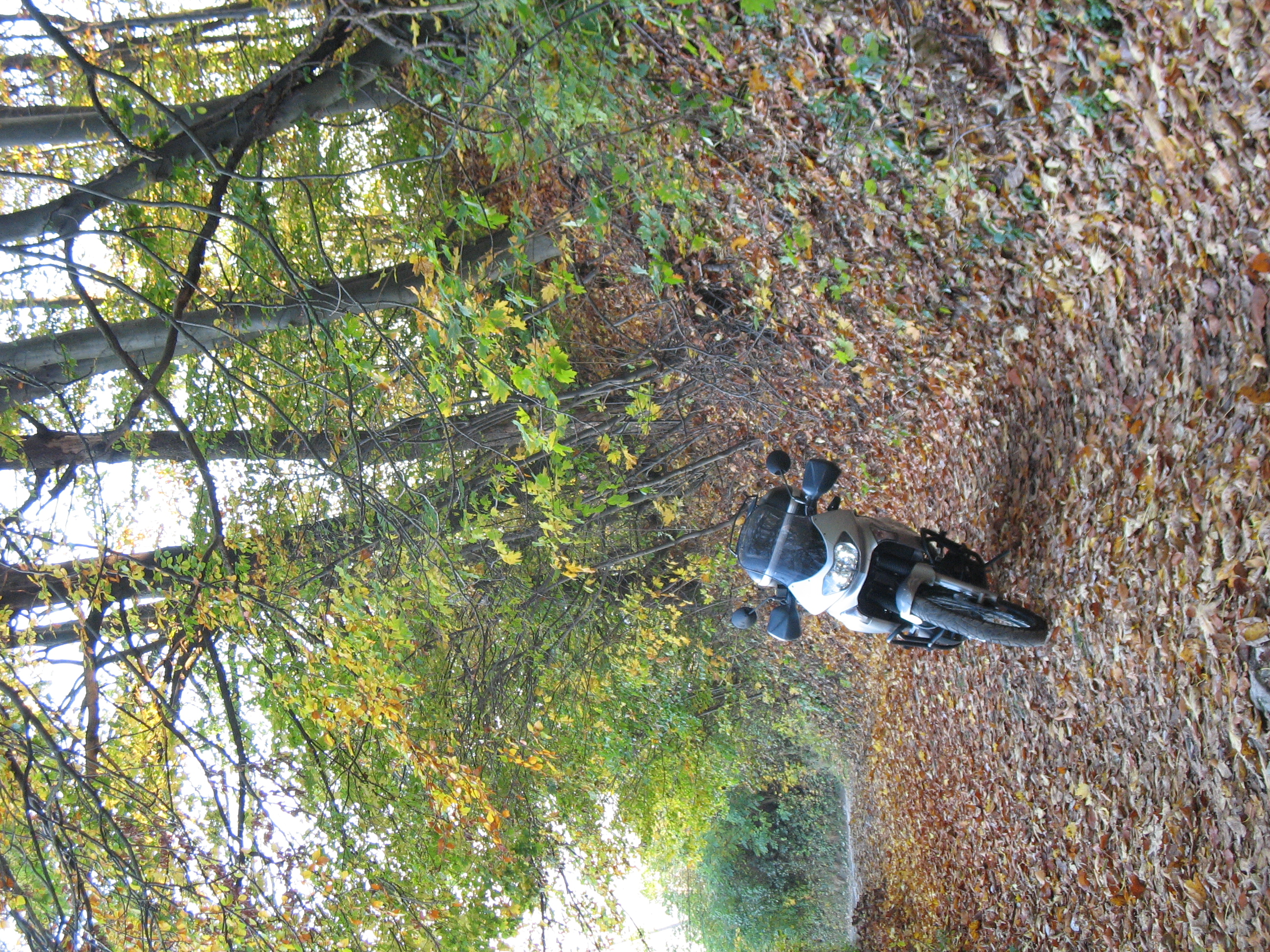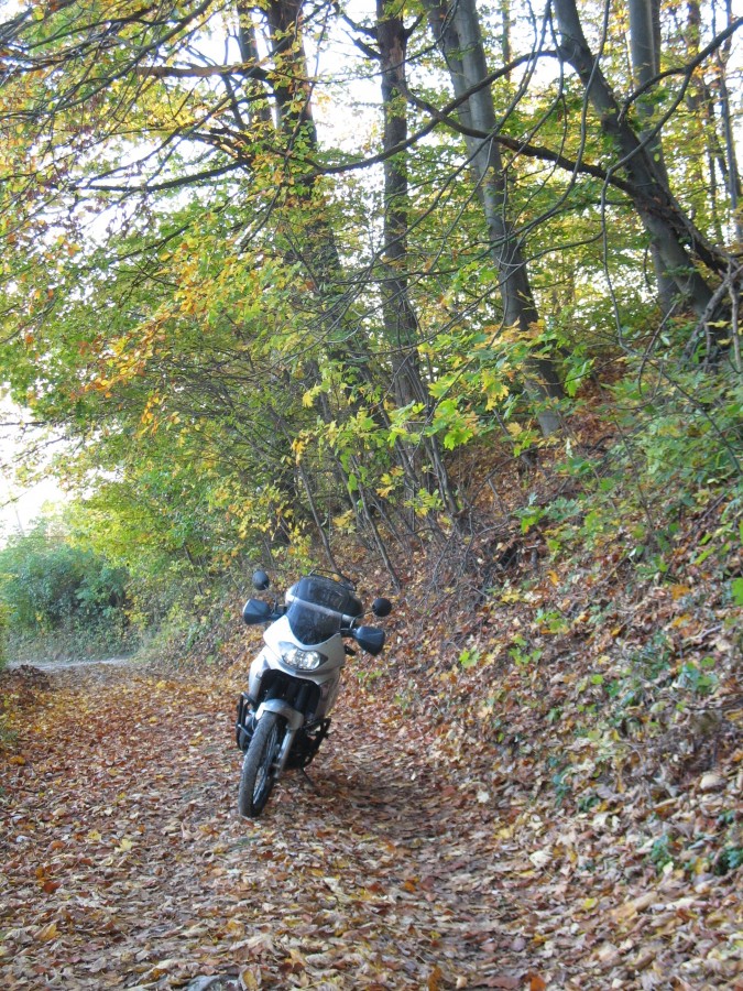 С такой радости решил катнуть на местный пик коммунизма - гору Цецино. К сожалению, местов, откуда бы открывался хороший вид на город, не нашёл, а вглубь было ехать лень, поскольку покрытие там не ахти: скользкая крупная брусчатка да ещё и листьями присыпанная. Поваляюсь там с мотиком как-нибудь в другой раз: