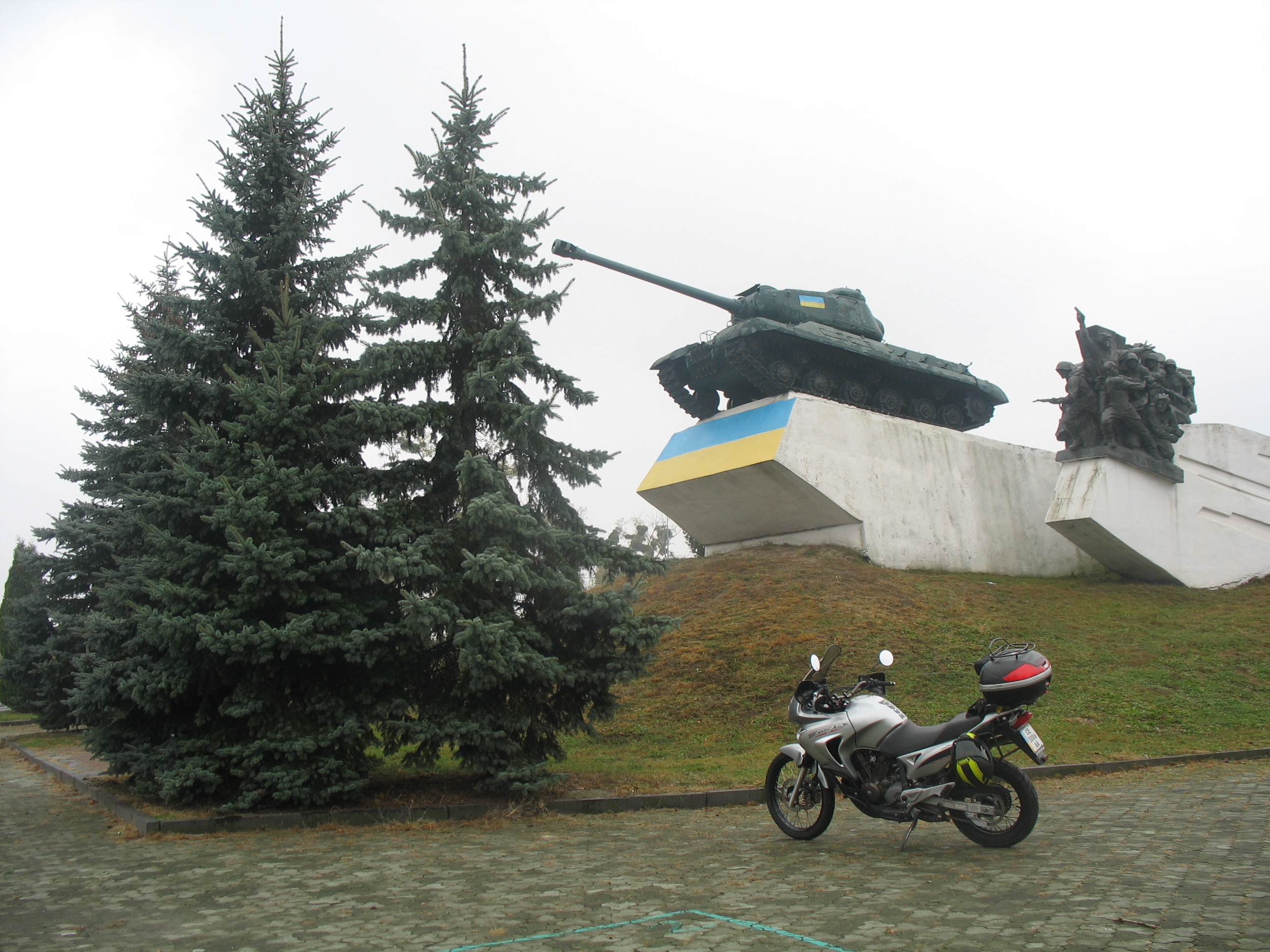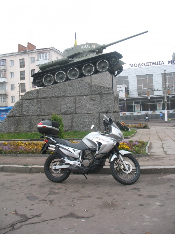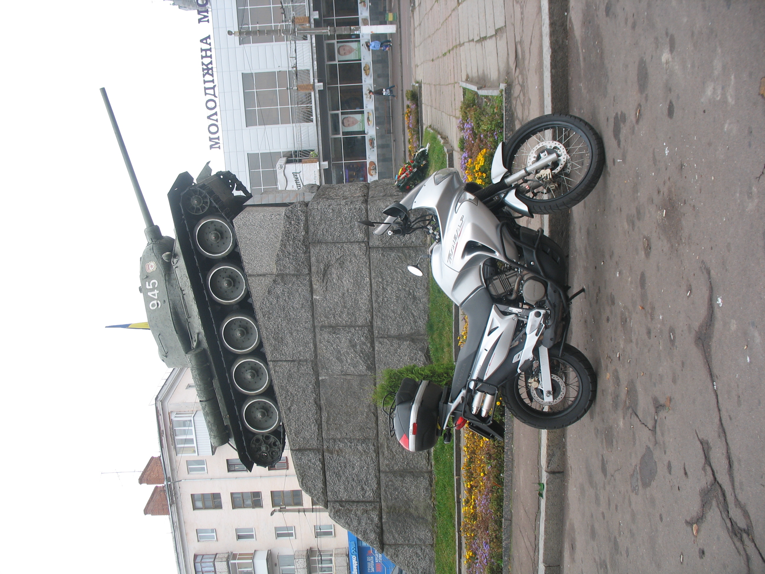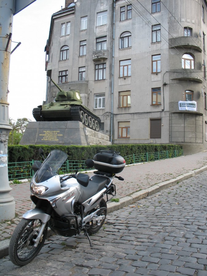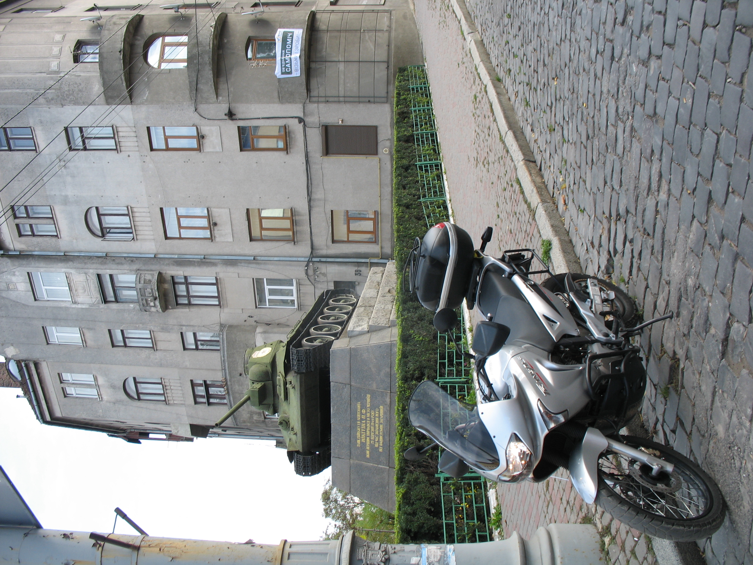 Те черновицкие улицы, которые с брусчаткой - это просто адъ. Поток едет со скоростью 20-30 км/ч, не больше. Как они вообще ездят там на машинах - не понимаю, если даже моя эндура скачет, как горная козлина. Короче, пора из города тулить. Задержался я здесь. На прощание фото у местного танка: