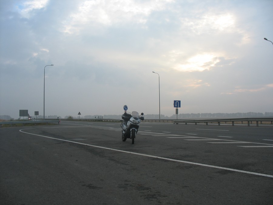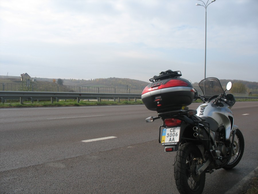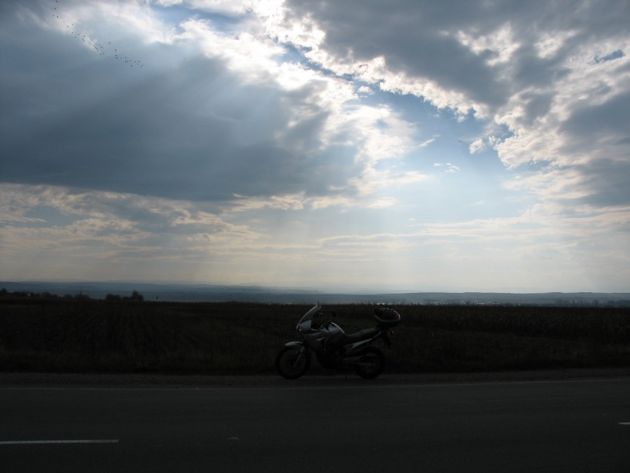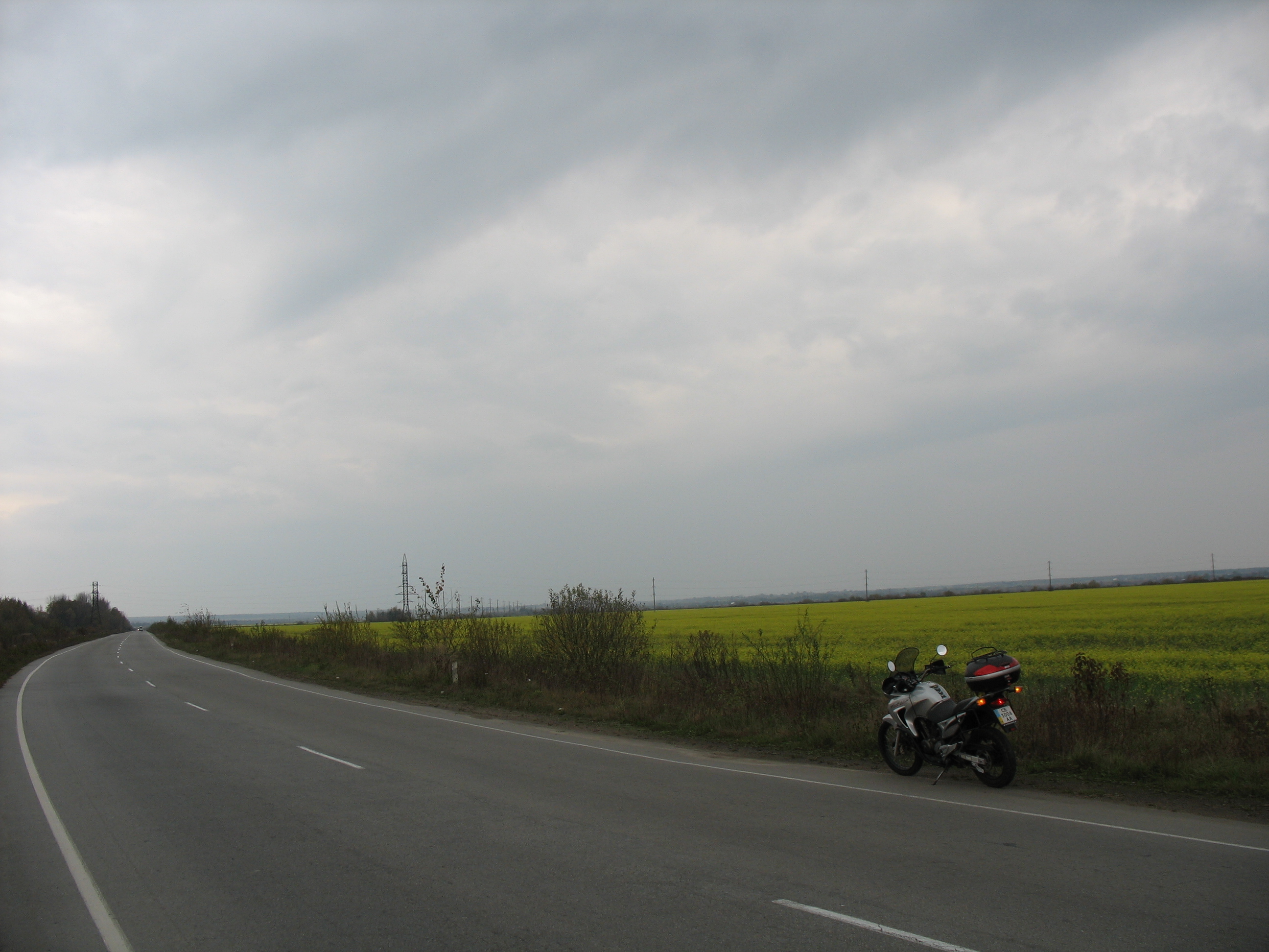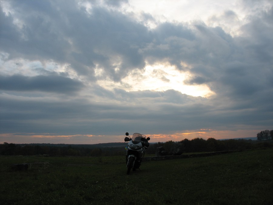 Выехал, торадиционно, на рассвете, натощак. Погодка выдалась хмурая и сыроватая, но не холодная. На подъезде к Житомиру сквозь сплошную завесу облаков начало проклёвываться солнце: