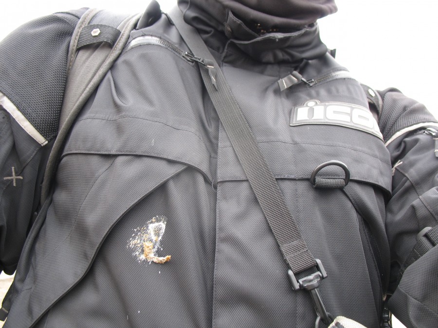 До встречи, Житомирская область! В воздухе стало ещё мокрее, посему пришлось облачиться в скафандр. Гаец, жующий семки неподалёку, с участием наблюдал за моими потугами, пока мне не пришлось прибегнуть к его помощи.