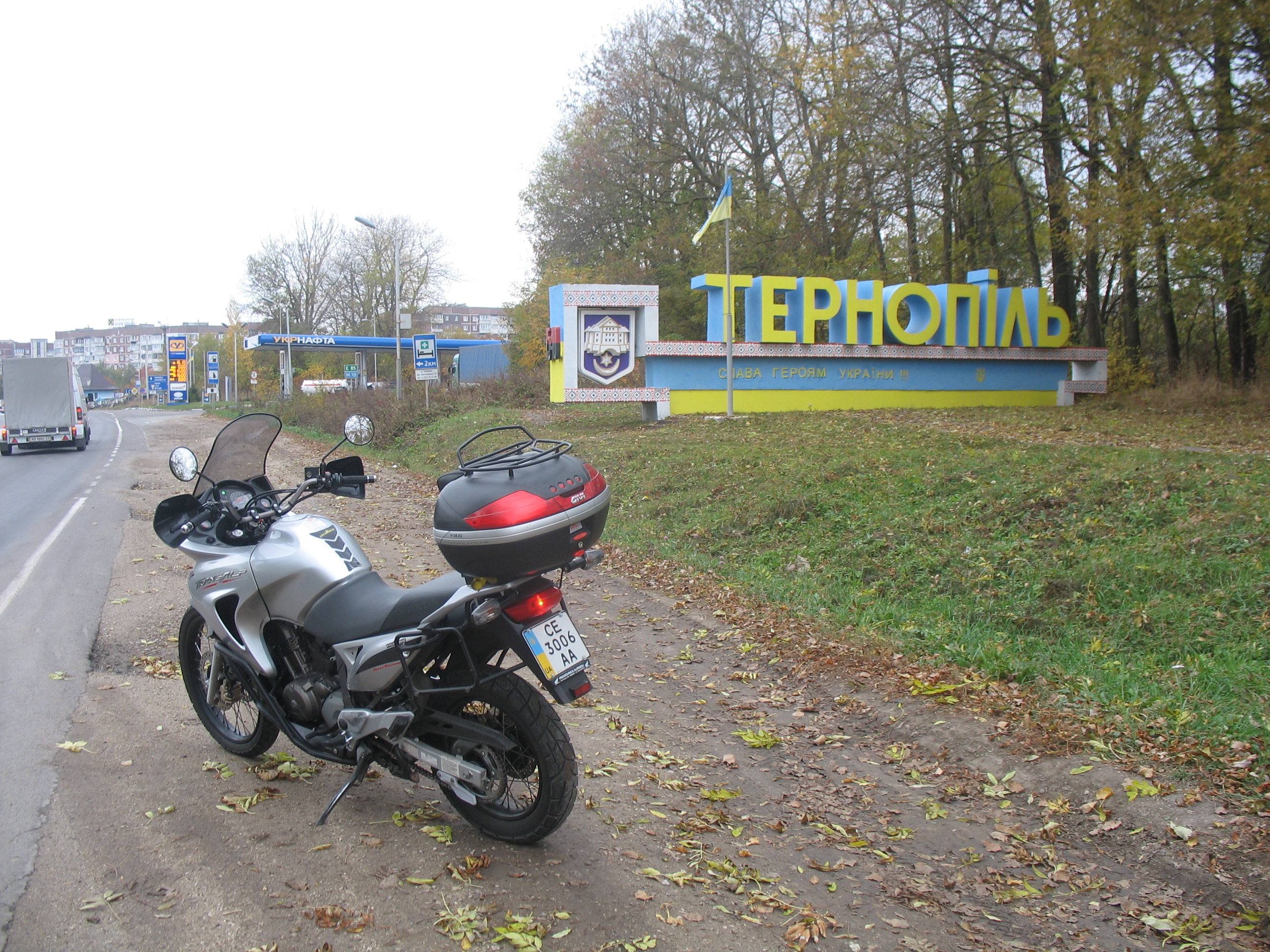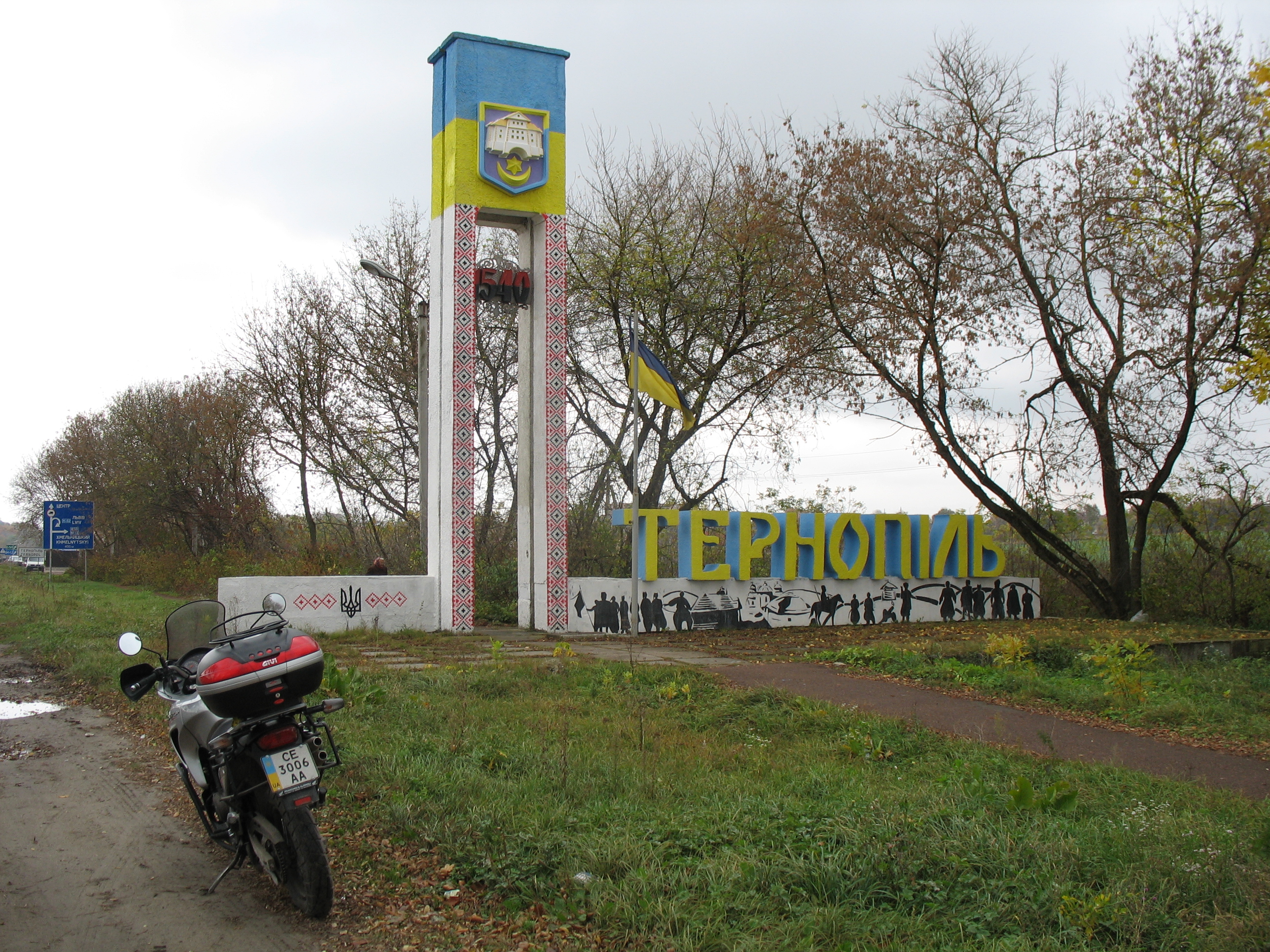 "Файне місто Тернопіль!" (c), обитель страшных бЕндеровцев :). В городе заехал на заправку: заморил червячка, напоил коня, поласкал цепь. Пока занимался, начался и закончился ливень. Скафандр пришлось усилить высокотехнологичным экзоскелетом из пакетов из супермаркета. Анти-дождевая броня оказалась, что надо.